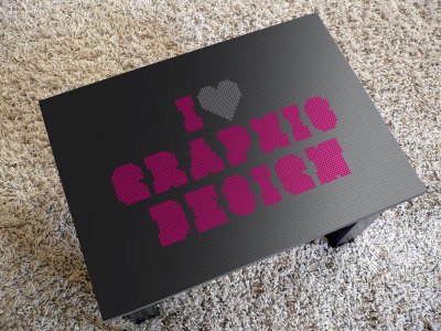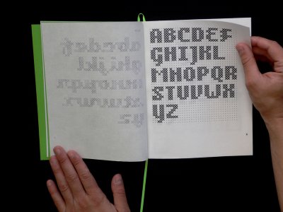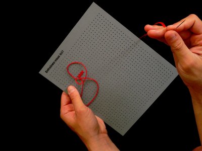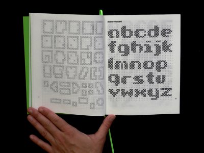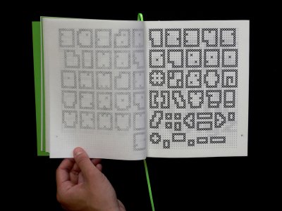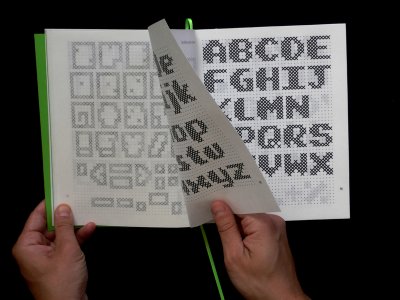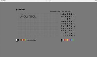 Comme une nappe, ce kit (livret+fils+aiguilles+coussin+mode d’emploi) est un véritable habillage graphique personnalisable à faire, défaire et refaire au grès dès envies. De plus, une application a été créée pour permettre de composer mots et motifs dans une grille afin de visualiser sa création avant de broder la table percée.