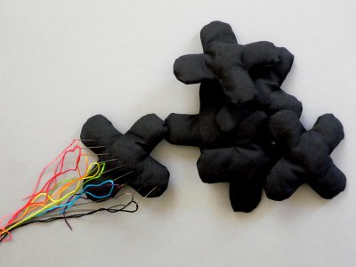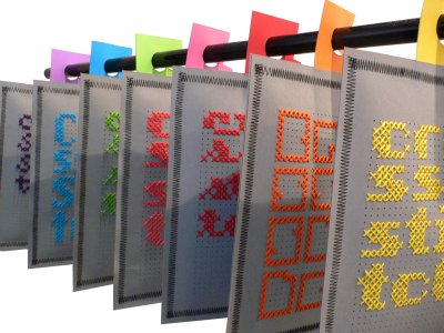De ces rapprochements est né le projet "Cross Stitch", qui est une alternative à la broderie traditionnelle au point de croix et à la rapidité de la vie contemporaine. "Cross Stitch" est un kit de broderie pour table percée où chacun peut broder lettres, mots et phrases associés à des motifs.