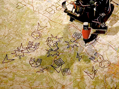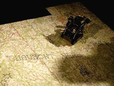Sur un dispositif sonore assuré par Patricia Dallio et Jérôme Soudan, Paul Hoc s’est librement baladé sur une carte de Chaumont, "posant" ça et là des icones issus d’une base de données graphiques.