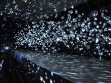 Une nuée de petits insectes lumineux s’agite, s’illumine et s’éparpille au contact de celui qui les manipule.