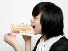 Au menu, une série d’impressions sur papier de riz avec des encres à base d’aliments : glaces, jus de fruits, etc.